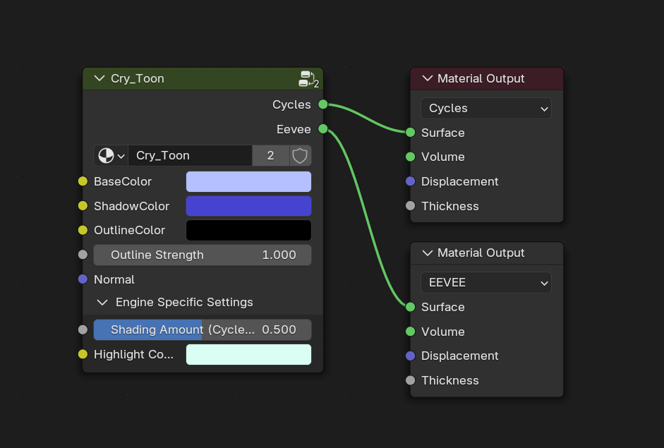 A fairly simple toon style shader. Most of my more complex shaders are built off of this base. Built for Eevee, but also works in Cycles